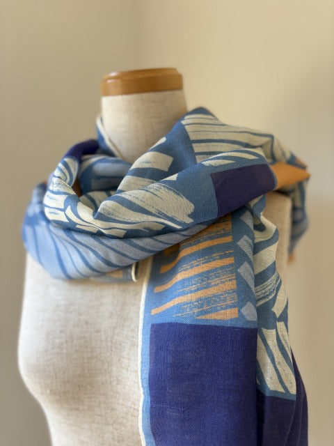 シルクウール シルクの綿の装飾 本格的な寒さに needle punch stole navy